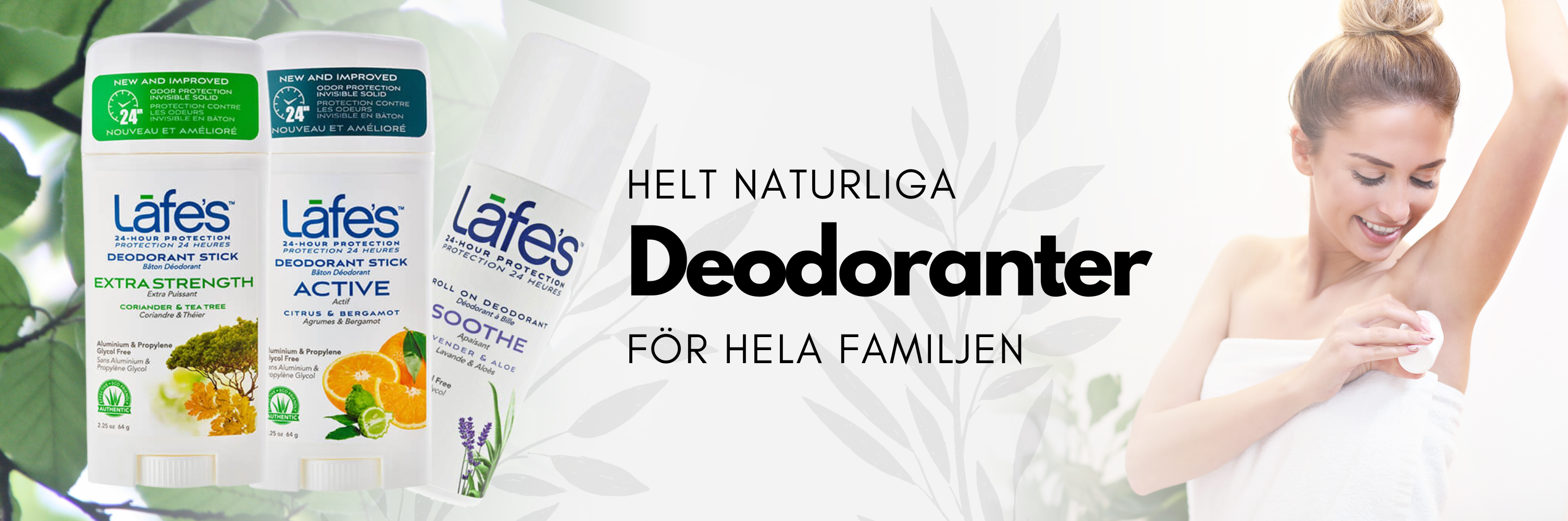 Helt naturliga och giftfria deodoranter för hela familjen. Certifierad av Cruelty-free och innehåller inga animaliska råvaror vilket gör att de passar veganer. Deodoranterna finns i olika dofter och versioner för att passa alla.