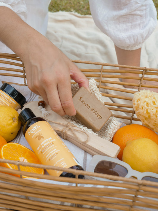 Upptäck den genuina Aleppotvålen i både sin fasta och flytande form i Najel’s gåvobox. Upptäck alla fördelar med denna historiska tvål. -