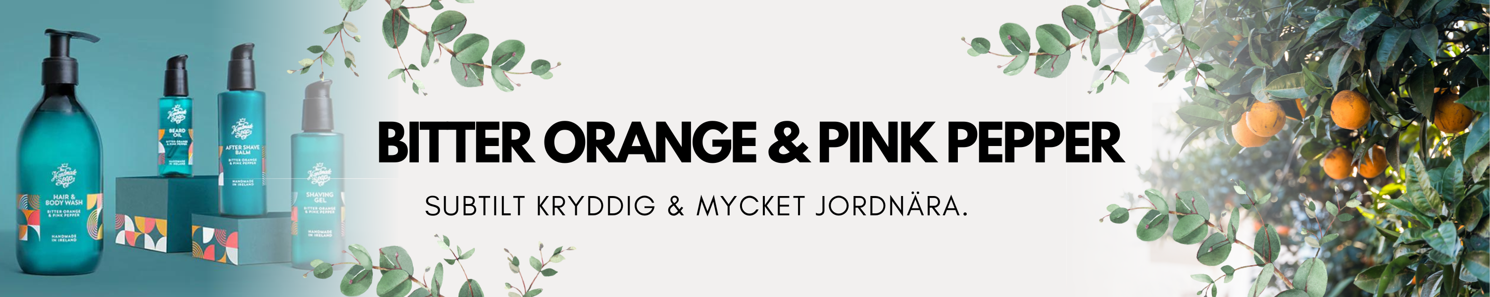 I serien Bitter Orange & Pink Pepper hittar du kroppstvål, handtvål, shaving gel, aftershave och deodorant.