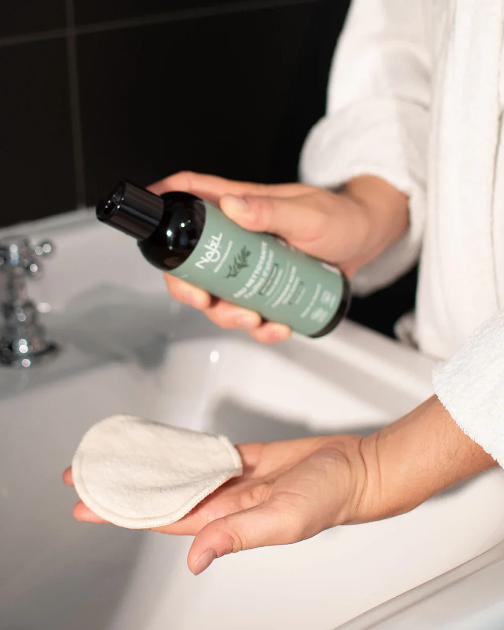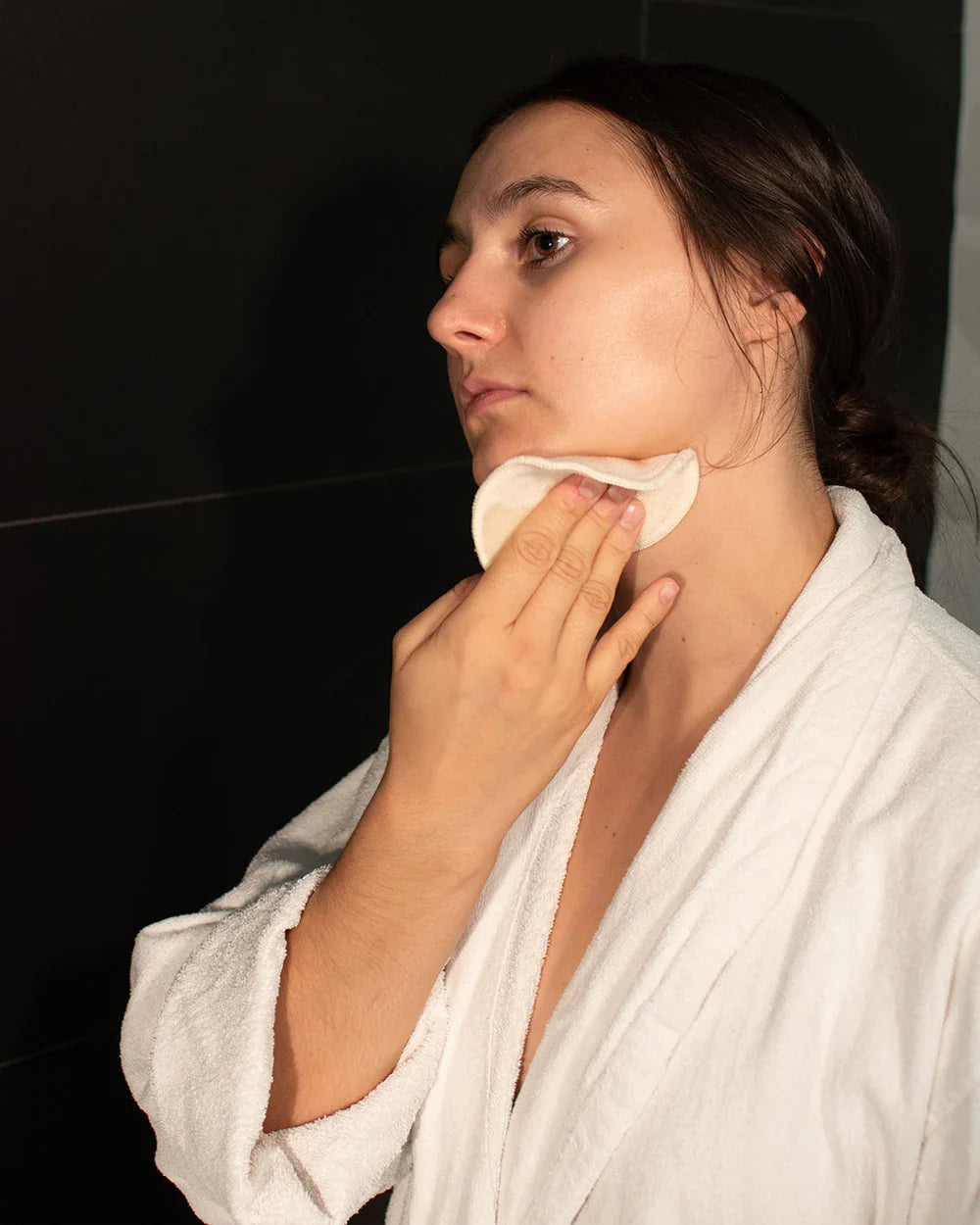 2. Lägg några droppar tonicvatten på en bomullsrondell och klappa den på hela ansiktet och halsen.