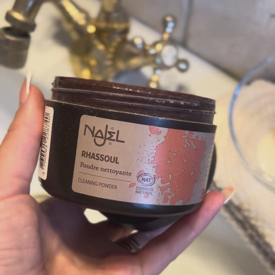 Rhassoul: marockansk mineralskatt, renar och lyser upp huden och hårbotten. Idealisk för fet hud, absorberar överflödigt talg och stramar upp porerna. Rik på mineraler, återställer den lyster och vitalitet, lämnar huden mjukt och glänsande hår för autentiskt välbefinnande. Denna bruna lera kända för orientaliska skönhetsritualer, speciellt för exfoliering i hammam, är grunden för många hår- och hudbehandlingar.